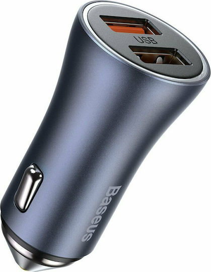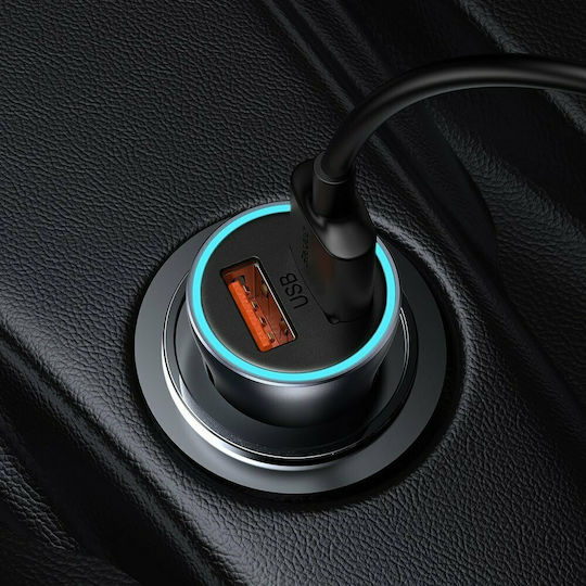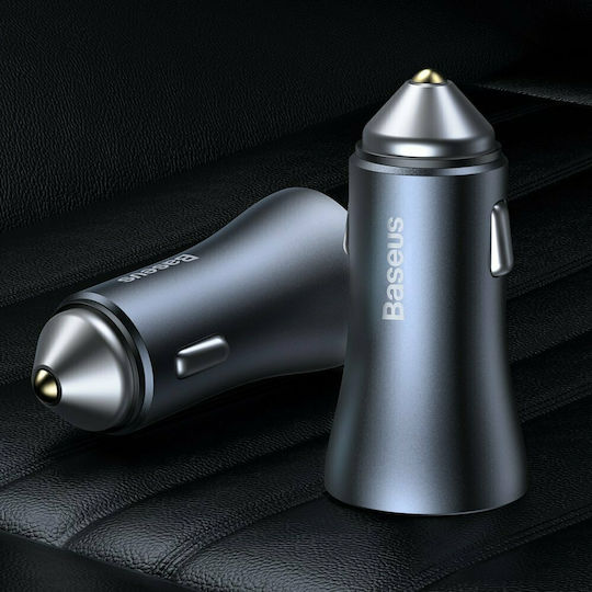 Baseus Φορτιστής Αυτοκινήτου 40W 5A Γρήγορης Φόρτισης με Θύρες: 2xUSB μαζί με Καλώδιο Type-C Γκρι TZCCJD-A0G