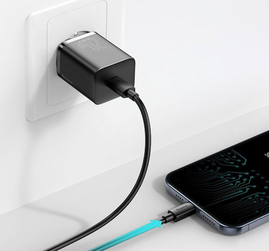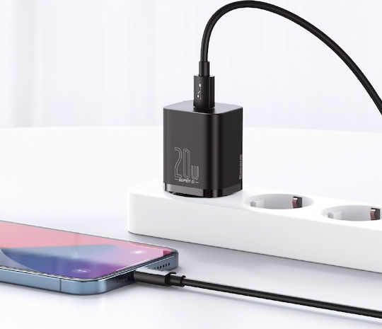 Baseus Φορτιστής με Θύρα USB-C και Καλώδιο USB-C – Lightning 20W Power Delivery Μαύρος (Super Si)