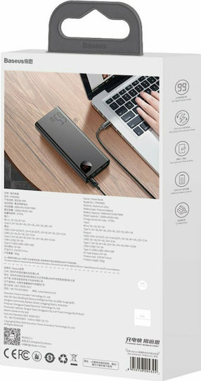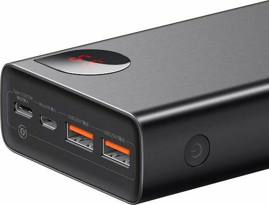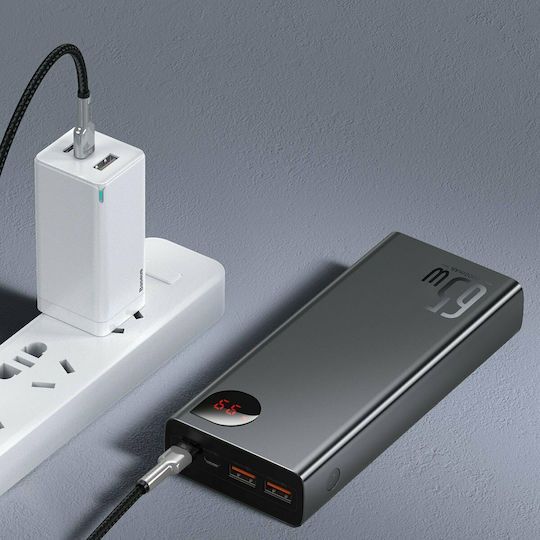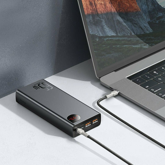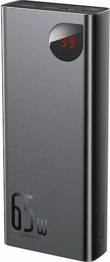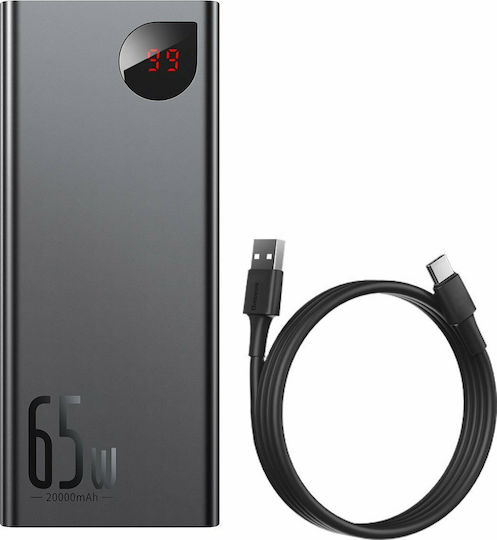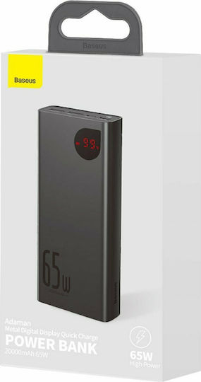 Baseus Adaman Metal Digital Display Power Bank 20000mAh 65W με 2 Θύρες USB-A και Θύρα USB-C Quick Charge 3.0 Μαύρο