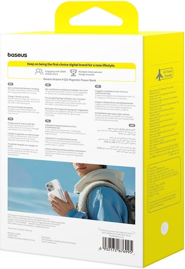 Baseus Airpow2 Qi2 Power Bank 10000mAh 22.5W με Θύρα USB-A και Θύρα USB-C Λευκό