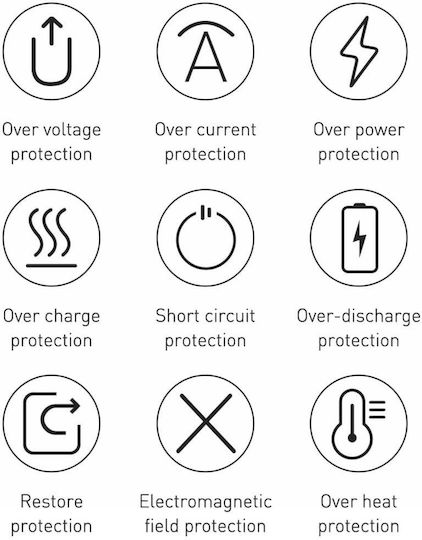 Μπορείτε να συνδέσετε πολλές συσκευές ταυτόχρονα και να μην ανησυχείτε για την ασφάλειά τους – το πολύπλοκο σύστημα προστασίας αποτρέπει αποτελεσματικά τη ζημιά τους. Η ενσωματωμένη οθόνη Led διευκολύνει τον χειρισμό του προϊόντος και το συμπαγές μέγεθος, το μικρό βάρος και η συμμόρφωση με τα διεθνή πρότυπα αεροπορικών μεταφορών σάς επιτρέπουν να το έχετε μαζί σας σχεδόν οπουδήποτε.