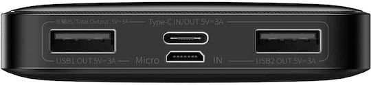 Baseus Bipow Overseas Edition Power Bank 10000mAh 15W με 2 Θύρες USB-A και Θύρα USB-C Μαύρο