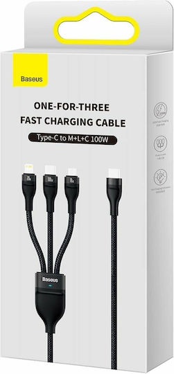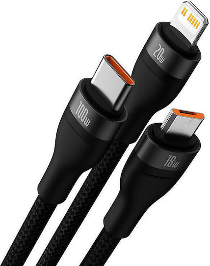 Baseus Flash Series II Braided USB to Lightning / Type-C / micro USB Cable Μαύρο 1.5m (CASS030201)