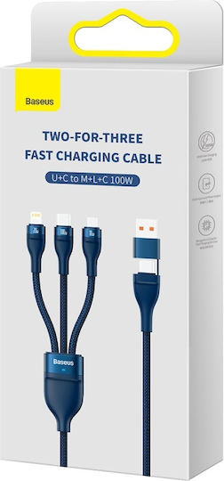 Baseus Flash Series II Braided USB to Type-C / micro USB / Lightning Cable Μπλε 1.2m (CASS030103)