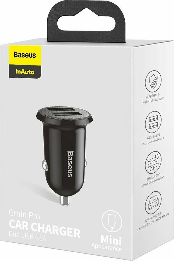 Ο φορτιστής αυτοκινήτου από τη Baseus σάς επιτρέπει να φορτίζετε ταυτόχρονα 2 συσκευές. Αυτό επιτρέπει σε εσάς και τον επιβάτη σας να φορτίζουν τα τηλέφωνά τους ταυτόχρονα. Το υψηλό ρεύμα επιτρέπει υψηλή απόδοση και ταχύτητα φόρτισης. Με το φορτιστή Baseus, μπορείτε να φορτίσετε όχι μόνο τη συσκευή σας Android ή Apple, αλλά και την πλοήγηση GPS, τα ακουστικά, τον φωτογραφικό εξοπλισμό, powerbanks, τα ηλεκτρονικά τσιγάρα και άλλα.