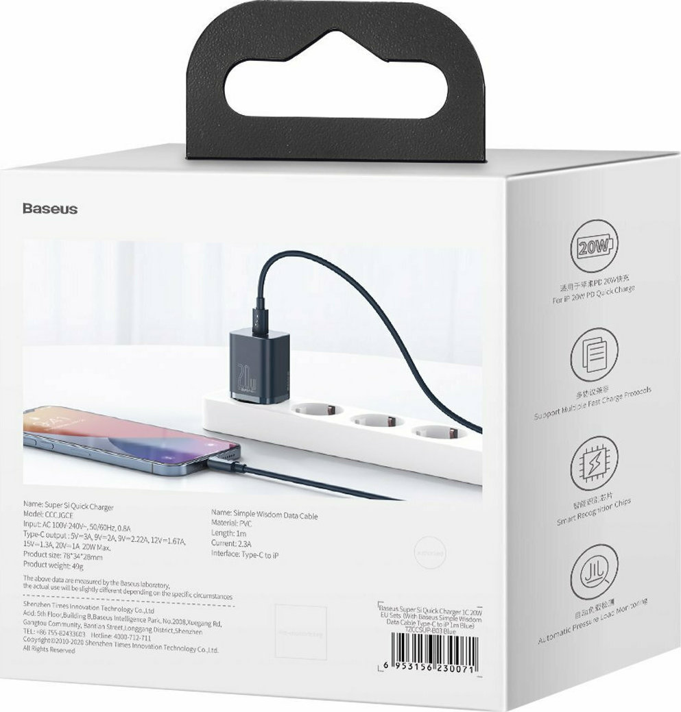 Baseus Super Si USB-C 20W με Καλώδιο USB-C – Lightning