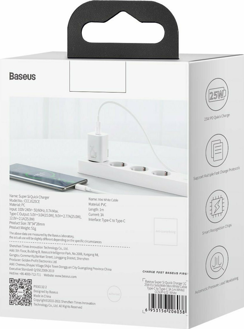 Baseus Super Si USB-C 25W με Καλώδιο USB-C – USB-C