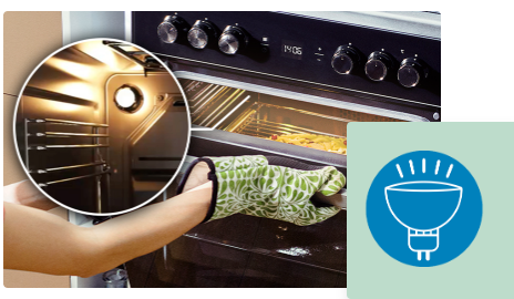 Θέλετε να δείτε πώς πάει το μαγείρεμα, αλλά δεν θέλετε να ανοίξετε την πόρτα και να χάσετε τη θερμότητα στο εσωτερικό; Ο φωτισμός αλογόνου σάς βοηθά να βλέπετε ολόκληρο τον φούρνο, ώστε να μπορείτε να παρακολουθείτε τις μαγειρικές σας δημιουργίες με την πόρτα του φούρνου κλειστή.
