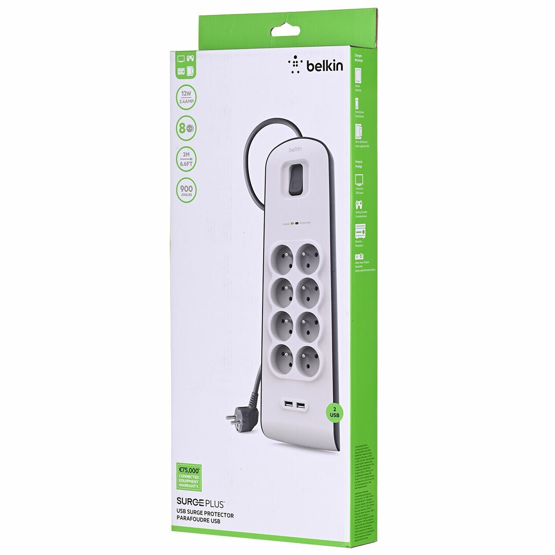 Belkin Πολύπριζο 8 Θέσεων με 2 USB-A και Καλώδιο 2m