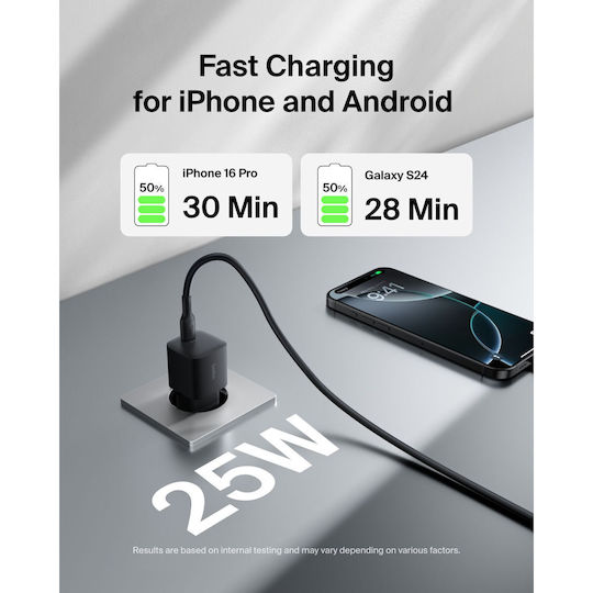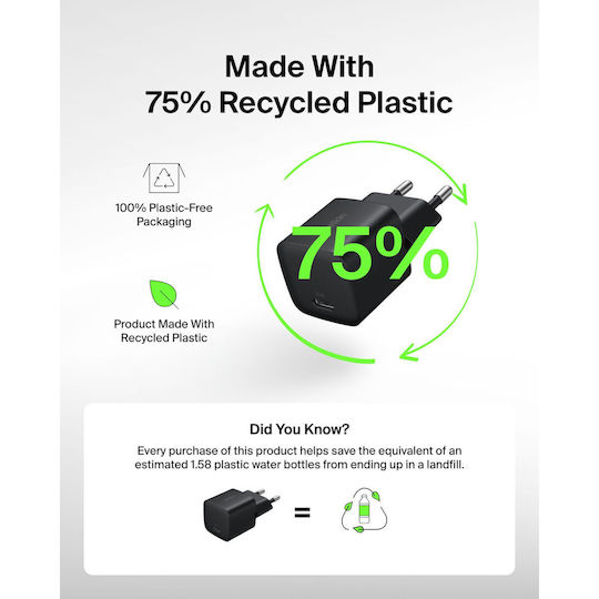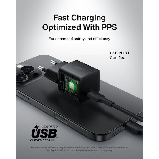 Belkin Φορτιστής με Θύρα USB-C και Καλώδιο USB-C – USB-C 25W Power Delivery Μαύρος (Boost Charge)