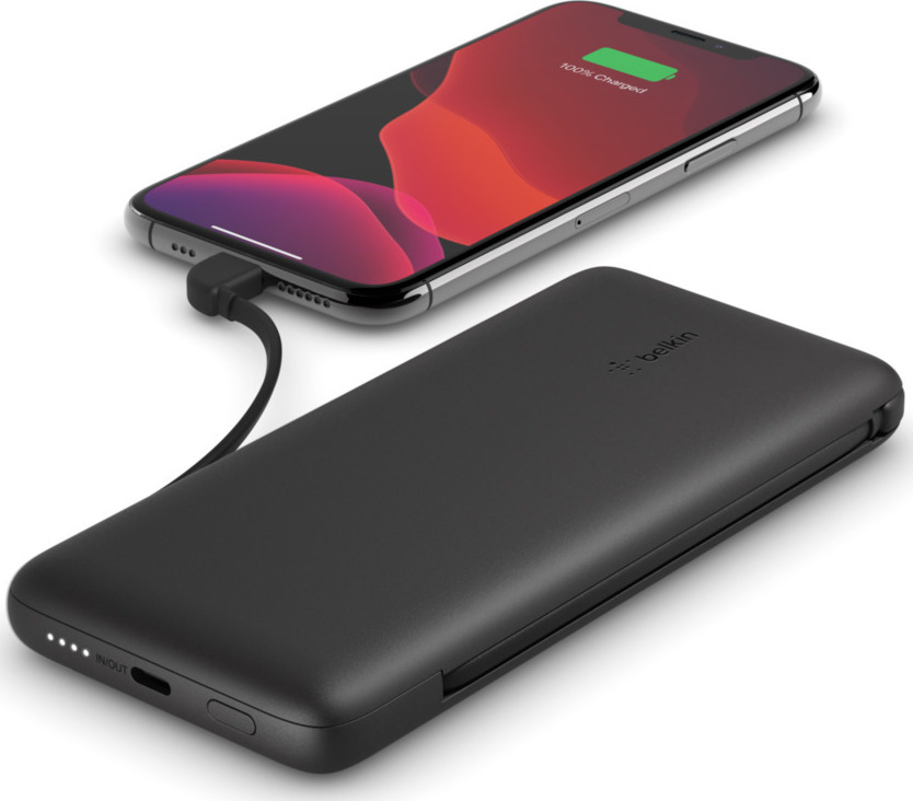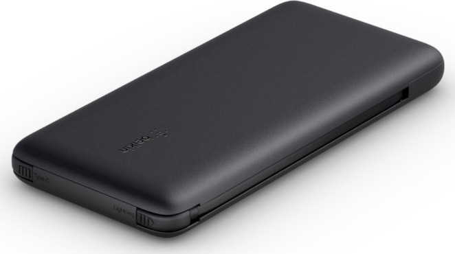 Αυτή η μπαταρία 10K με ενσωματωμένα καλώδια USB-C και Lightning σας επιτρέπει να φορτίζετε ένα iPhone χωρίς να μεταφέρετε ένα επιπλέον καλώδιο ή να φορτίζετε δύο συσκευές ταυτόχρονα. Το power bank μπορεί να φορτίζει και να φορτίζεται ταυτόχρονα.