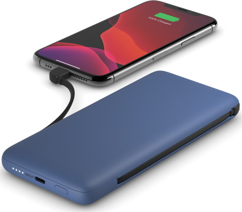 Αυτή η μπαταρία 10K με ενσωματωμένα καλώδια USB-C και Lightning σας επιτρέπει να φορτίζετε ένα iPhone χωρίς να μεταφέρετε ένα επιπλέον καλώδιο ή να φορτίζετε δύο συσκευές ταυτόχρονα. Το power bank μπορεί να φορτίζει και να φορτίζεται ταυτόχρονα.