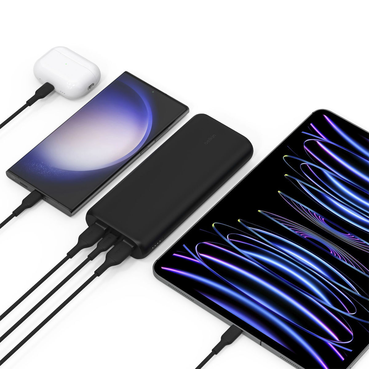 Φορτίστε έως 3 συσκευές ταυτόχρονα με το μικρό και ισχυρό Power Bank Belkin Boost Charge 3-Port Compact 20K with PD 20W. Αυτή η εξαιρετικά φορητή συσκευή είναι συμβατή με τα πρότυπα ασφαλείας της TSA για αεροπορικά ταξίδια και είναι προ-φορτισμένη και έτοιμη για χρήση.