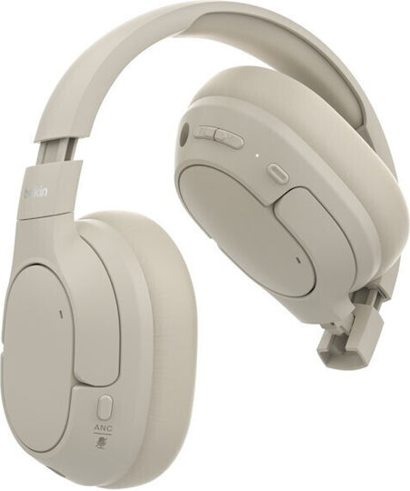 Belkin SoundForm Isolate Ασύρματα / Ενσύρματα Over Ear Ακουστικά με 60 ώρες Λειτουργίας Sand