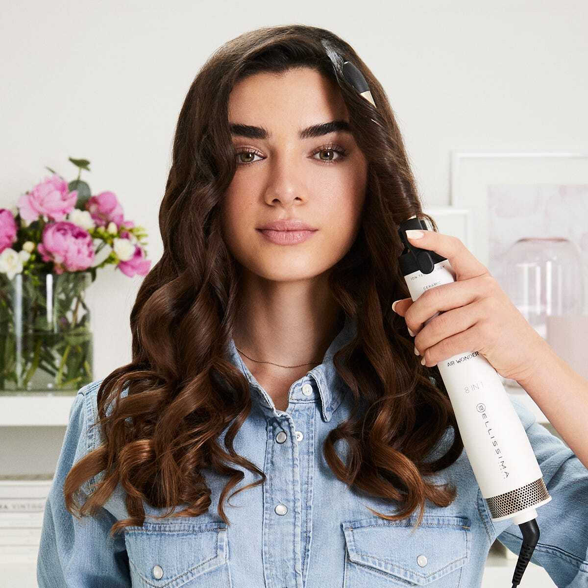 Ίσια και απαλά κυματιστά με διαμορφωμένες άκρες: απλώς χρησιμοποιήστε την Extra Wavy, τη στρογγυλή βούρτσα 32 mm επίσης καλυμμένη με κεραμική επίστρωση και κερατίνη.