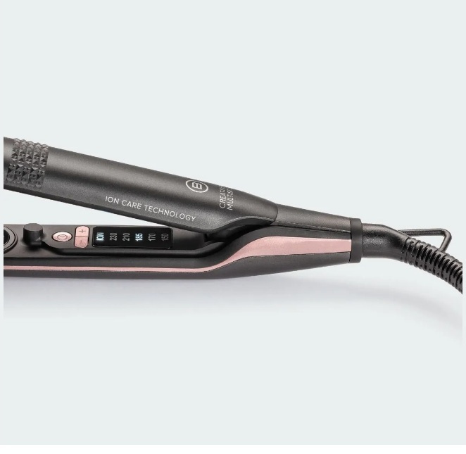 Η αποκλειστική Kεραμική επένδυση Διαμαντιού & Κερατίνης προστατεύει από τη ζέστη, εξασφαλίζει τέλεια εφαρμογή και χαρίζει φωτεινότητα και ζωντάνια σε κάθε πέρασμα. Είναι εξοπλισμένο με ιονιστή που βοηθά στη διατήρηση της ενυδάτωσης και μειώνει το φριζάρισμα.