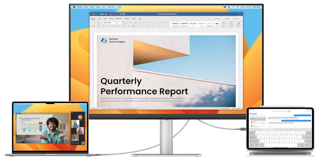 Περισσότερο από μια κομψή εξωτερική οθόνη για τον υπολογιστή MacBook Pro και MacBook Air, είναι επίσης ένας ισχυρός κόμβος για το επιτραπέζιο οικοσύστημα Apple. Ο ενσωματωμένος διανομέας 15 W φορτίζει τις συσκευές σας iPad® και iPhone® ενώ εργάζεστε.