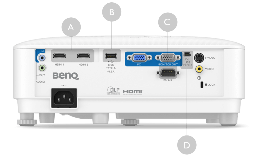 Κλειδαριά Kensington: Σχεδιασμένη για να ασφαλίζει επιτραπέζιους προβολείς, η διεπαφή κλειδώματος Kensington παρέχει «φυσική» ασφάλεια.