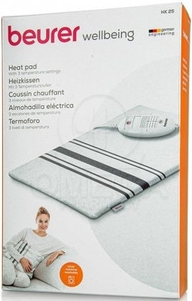 Η HK 26 Θερμοφόρα διαθέτει κάλυμμα μαξιλαριού κατασκευασμένο από βαμβάκι, το οποίο μπορεί να πλυθεί στο πλυντήριο στους 40°C. Περιλαμβάνει το πατενταρισμένο σύστημα ασφαλείας BSS Beurer Safety System για παρακολούθηση θερμοκρασίας και αυτόματη απενεργοποίηση ασφαλείας. Διαθέτει τρεις φωτιζόμενες ρυθμίσεις θερμοκρασίας και αυτόματη απενεργοποίηση μετά από 90 λεπτά χρήσης.