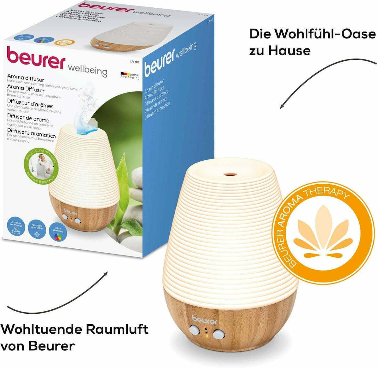 Beurer Led Συσκευή Αρωματοθεραπείας Υπερήχων LA 40 με Χρονοδιακόπτη Λευκή 12W