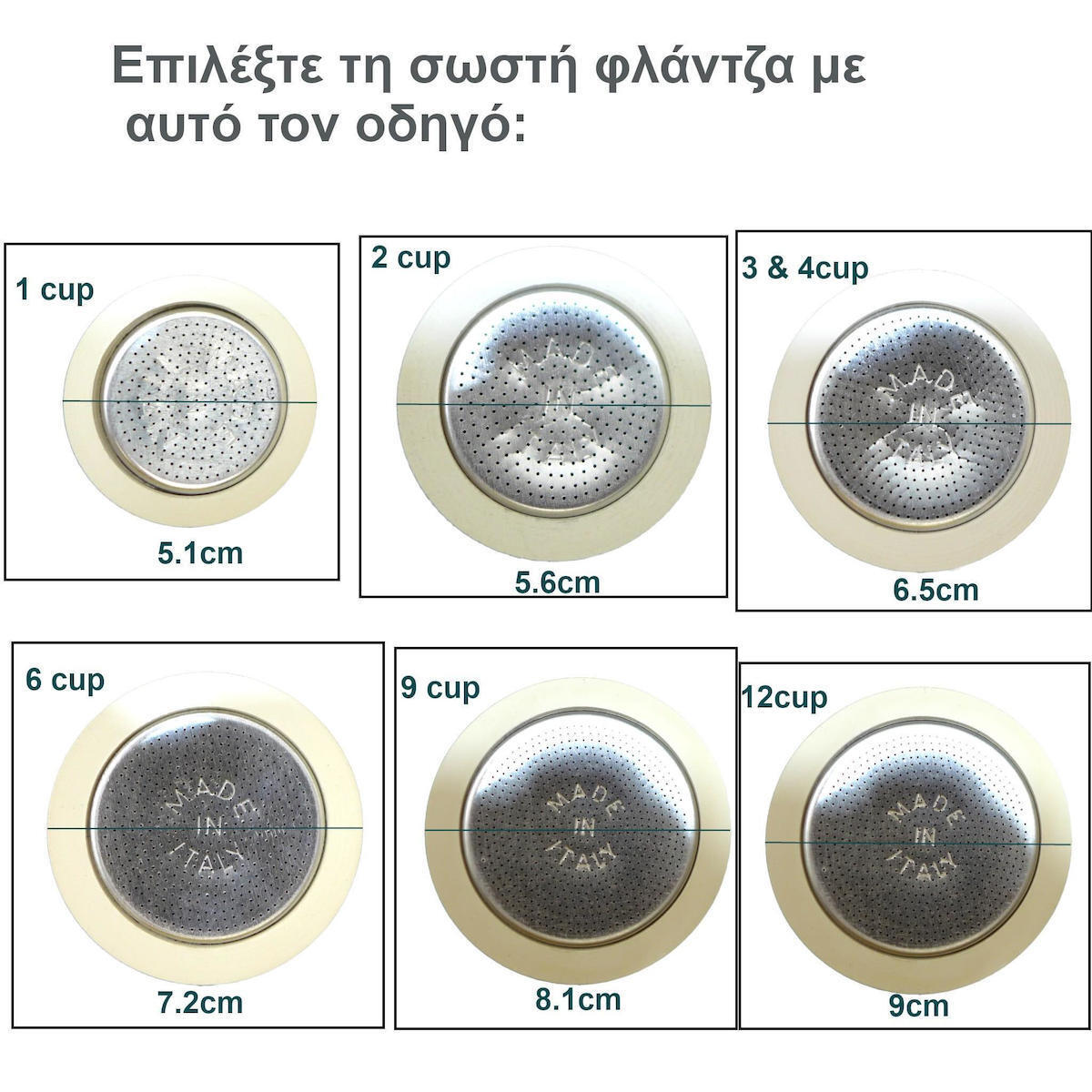 Ανταλλακτικό Φίλτρο & 3 Φλάντζες για 1 μερίδα (για Bialetti moka express -Fiammetta – Break- Happy – Dama – Mini Express – Rainbow