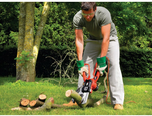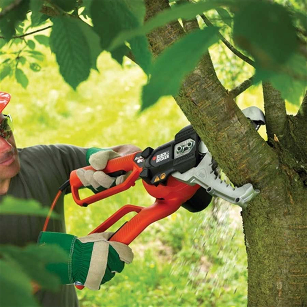 Το Ηλεκτρικό Πριόνι Κλαδέματος 550W GK1000 της Black&Decker έχει ελαφρύ σχεδιασμό για εύκολη χρήση και ευελιξία, 10 φορές πιο γρήγορο από ένα κλαδευτήρι χειρός. Έχει ένα αρκετά δυνατό μοτέρ. Οι λάβες του είναι σε σχήμα ψαλίδας. Λειτουργεί ακριβώς όπως ένα χειροκίνητο πριόνι αλλά με τη δύναμη ενός αλυσοπρίονου. Αυτό το πρωτοποριακό εργαλείο κοπής κάνει ελαφριά δουλειά μικρών κλάδων έως και 4 “(100mm). Οι πατενταρισμένες σιαγόνες προστατεύουν τον χρήστη από τη μετακίνηση της αλυσίδας κοπής. Επαναστατικό νέο εργαλείο κοπής με απόδοση κοπής αλυσοπρίονου σε μια εύχρηστη και πολύ λιγότερο εκφοβιστική μορφή. Πλήρως κλεισμένη ράβδος και αλυσίδα. Εύκολο στη χρήση σε όλο τον κήπο. Χειριστήρια διπλού διακόπτη τύπου Lopper.