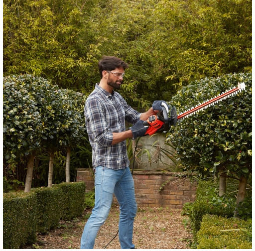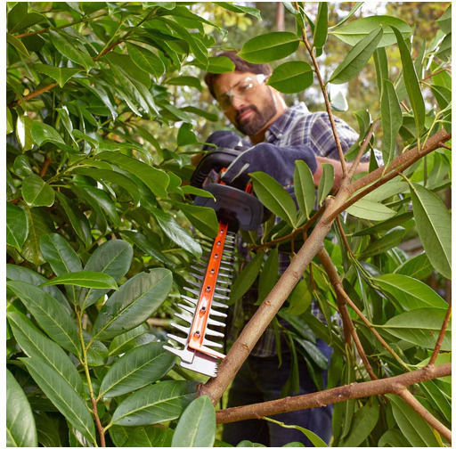 Ηλεκτρικό κλαδευτήρι θάμνων 60cm 550W με λάμα πριονιού 60cm διπλής δράσης, ιδανική για θάμνους μεσαίου μεγέθους, με κοπτική ικανότητα κλαδιών πάχους έως και 35mm που μειώνει το χρόνο μη διαθεσιμότητας, χωρίς να χρειάζεται επιπλέον εργαλεία.