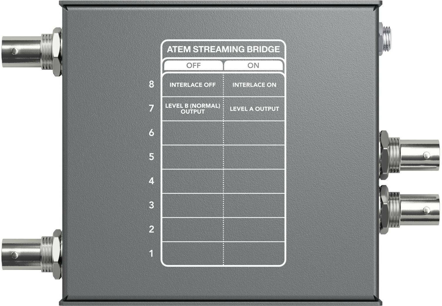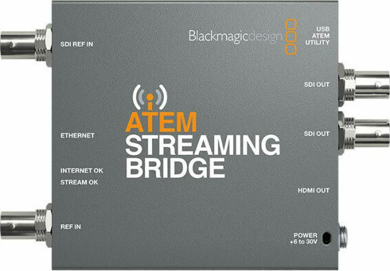 Η ATEM Streaming Bridge της Blackmagic Design είναι ένας Videokonverter που επιτρέπει την λήψη ενός H.264-Stream από οποιοδήποτε ATEM Mini Pro και την επιστροφή του σε SDI και HDMI βίντεο. Αυτό διευκολύνει τη μετάδοση βίντεο σε απομακρυσμένες τοποθεσίες μέσω του τοπικού δικτύου Ethernet ή ακόμα και μέσω Internet σε παγκόσμια κλίμακα. Ο κονβέρτερ χρησιμοποιεί προηγμένους H.264-Codecs για καλύτερη ποιότητα με ελάχιστες διακυμάνσεις δεδομένων.