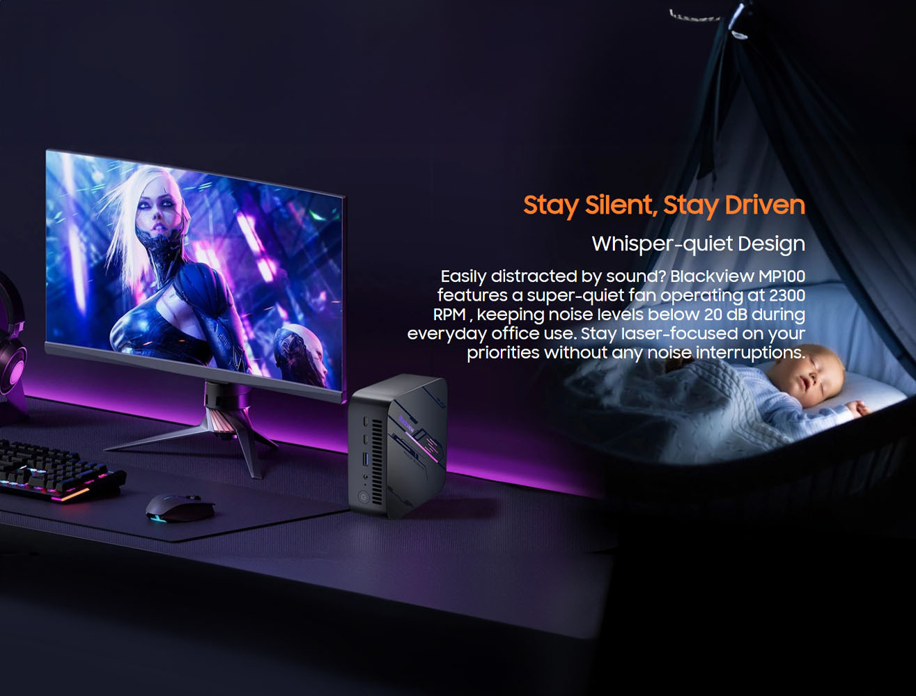 Το Blackview MP100 επαναπροσδιορίζει την έννοια του desktop με πανίσχυρη απόδοση σε μίνι μέγεθος. Από επεξεργασία βίντεο και απαιτητικά παιχνίδια, έως εργασίες γραφείου – αυτό το μικρό θαύμα αποδίδει τα μέγιστα χωρίς συμβιβασμούς.