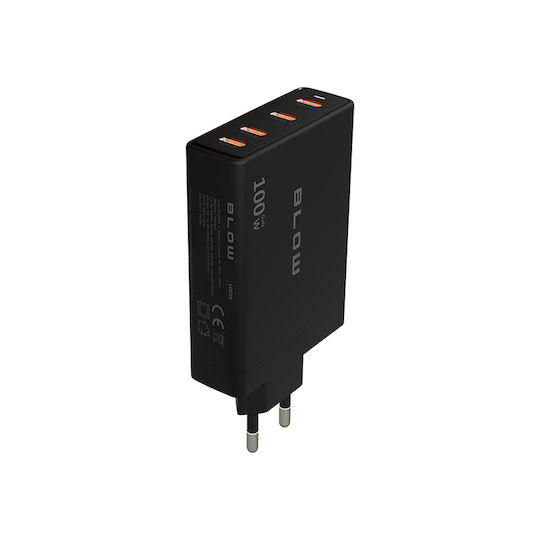Blow Φορτιστής Χωρίς Καλώδιο GaN με 4 Θύρες USB-C 100W Power Delivery Μαύρος (76-031)