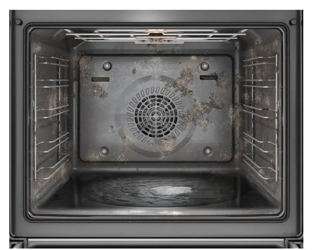 Λίγοι λεκέδες στον φούρνο; Βάλε 400ml νερό με λίγη σταγόνα απορρυπαντικό στον πάτο του φούρνου, τρέξε το πρόγραμμα καθαρισμού και μετά… απλά σκούπισε. Καθάρισμα, οικολογικό και χωρίς κόπο.