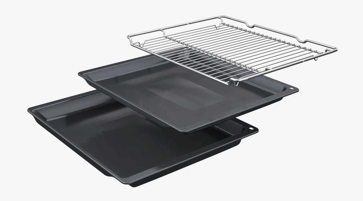 Αξεσουάρ που περιλαμβάνονται – 1 x ρηχό ταψί, 1 x ταψί γενικής χρήσης και 1 x σχάρα συνδυασμού — ό,τι χρειάζεσαι για να ξεκινήσεις.