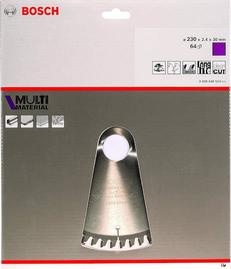Bosch Δίσκος Κοπής Ξύλου με 64 Δόντια 230mm 2608640513