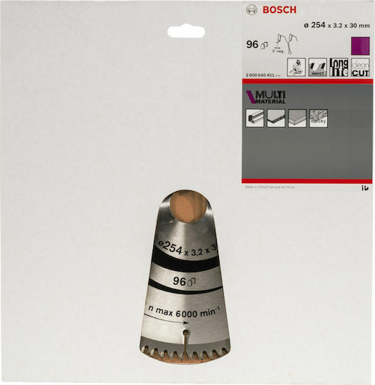 Bosch Δίσκος Κοπής Ξύλου με 96 Δόντια 254mm 2608640451