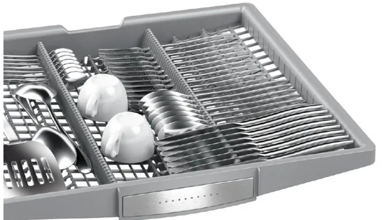 Με το σύστημα VarioFlex, έχεις την απόλυτη ευελιξία: οκτώ ρυθμιζόμενα στοιχεία στο πάνω καλάθι (ράφια, θήκες για ποτήρια) και εννέα στο κάτω. Βάλε ό,τι θέλεις, από μακριά μαχαιροπίρουνα μέχρι ποτήρια κρασιού, χωρίς κόπο. Η λαβή από ατσάλι κάνει τη φόρτωση παιχνιδάκι. Και με το VarioDrawer, έχεις και επιπλέον χώρο για τα μικροαντικείμενα και τα μαχαιροπίρουνα — τέλεια οργάνωση, ακόμα και σε μικρό χώρο.