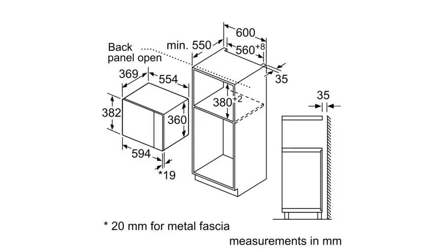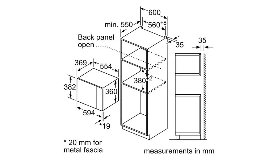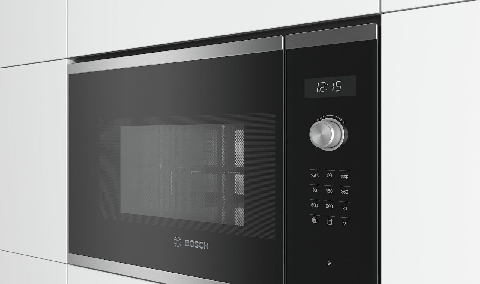 Εντοιχιζόμενος φούρνος μικροκυμάτων Bosch με ισχύ μικροκυμάτων 900W, με αυτόματα προγράμματα ξεπαγώματος με ρύθμιση βάρους, led οθόνη και προγράμματα συνδυασμού μικροκυμάτων και γκριλ.