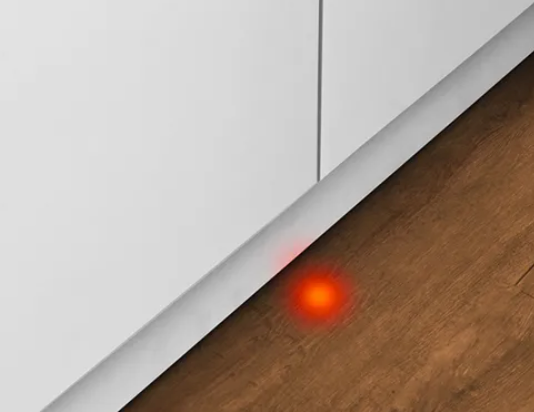 Μια κόκκινη κουκκίδα LED στο πάτωμα υποδεικνύει πότε λειτουργεί το πλυντήριο πιάτων.