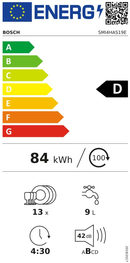 Ετήσια Κατανάλωση Ενέργειας: 84 kWh ανά 100 κύκλους στο οικονομικό πρόγραμμα.