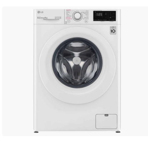 Πλυντήριο ρούχων 8 κιλών με τεχνολογία Inverter Direct Drive για αθόρυβη και αποδοτική λειτουργία. Περιλαμβάνει 14 προγράμματα πλύσης και δυνατότητα καθυστέρησης έναρξης. Ενεργειακή κλάση C.