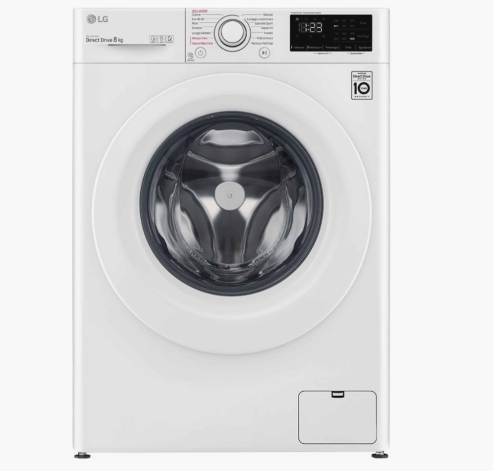 Πλυντήριο ρούχων 8 κιλών με 14 προγράμματα πλύσης, τεχνολογία Inverter Direct Drive για αθόρυβη και αποδοτική λειτουργία, και δυνατότητα καθυστέρησης έναρξης. Ενεργειακή κλάση A.
