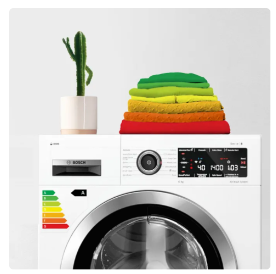 Περίμενε να ακούσεις κάτι καλό: με το πλυντήριο Bosch, η ενεργειακή κατανάλωση δεν θα είναι πια το πρόβλημά σου. Με την υψηλότερη ενεργειακή κλάση A, το πλυντήριό σου προσφέρει εξαιρετικά αποτελέσματα και ταυτόχρονα φροντίζει τον πλανήτη και την τσέπη σου. Απολαύστε τέλειες πλύσεις, χωρίς να ανησυχείτε για τον λογαριασμό ρεύματος!