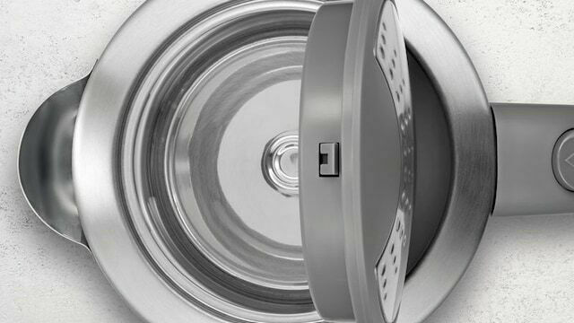 Ανοίξτε το καπάκι με το πάτημα ενός κουμπιού. Χάρη στο μεγάλο άνοιγμα του καπακιού, ο βραστήρας μπορεί να καθαριστεί γρήγορα και εύκολα.
