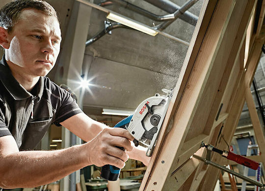 Το δισκοπρίονο Bosch 12V προσφέρει ευελιξία και ακρίβεια σε κάθε εργασία ξυλουργικής. Λειτουργεί με μπαταρία λιθίου 12V (δεν περιλαμβάνεται) και είναι ιδανικό για ευθείες κοπές σε ξύλο, με δυνατότητα φαλτσοκοπής για πιο απαιτητικές εφαρμογές. Η LED φωτοδίοδος εξασφαλίζει καθαρή ορατότητα στη γραμμή κοπής, ενώ ο οδηγός και η σκληρή θήκη που περιλαμβάνονται στη συσκευασία προσθέτουν πρακτικότητα και ευκολία στη χρήση και μεταφορά. Οι χρήστες το ξεχωρίζουν για τις σταθερές κάθετες και φαλτσοκοπές του.