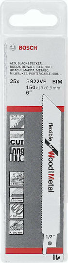 Bosch S 922 VF Λάμες Flexible for Wood and Metal για Μέταλλο και Ξύλο 150mm 25τμχ
