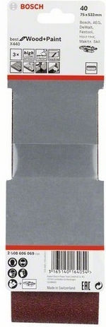 Bosch Tαινία Λείανσης K40 75x533mm Σετ 3τμχ 2608606069