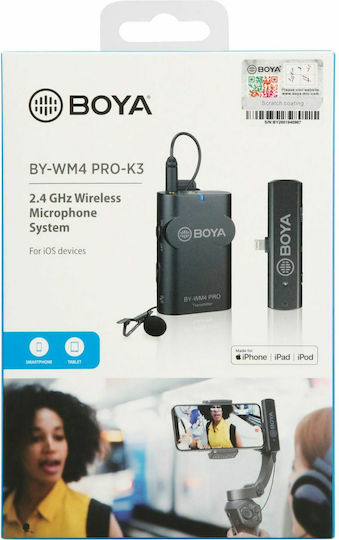 Το BOYA BY-WM4 PRO-K3 Wireless Omni Lavalier Microphone System for iOS Devices είναι ένα μικρό και απλό σύστημα μικροφώνου για το πέτο, εύχρηστο και αποτελεσματικό για την καταγραφή ήχου από συσκευή iOS με θύρα Lightning. Το σύστημα παρέχει βελτιωμένη ποιότητα ήχου σε σχέση με τα ενσωματωμένα μικρόφωνα των συσκευών και είναι ιδανικό για δημοσιογράφους, vloggers και δημιουργούς βίντεο στα YouTube/Instagram/TikTok κ.α.