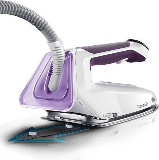 Το σίδερο ατμού Braun CareStyle 5 IS5247.VI είναι μια υψηλής απόδοσης συσκευή σχεδιασμένη για αποδοτική και φιλική προς το περιβάλλον σιδέρωμα. Ο καινοτόμος σχεδιασμός του εμπνέεται από τη αισθητική των snowboards, με στρογγυλεμένες και κεκλιμένες άκρες στην πλάκα σιδερώματος, επιτρέποντας την άνετη χρήση του σε κουμπιά και φερμουάρ.