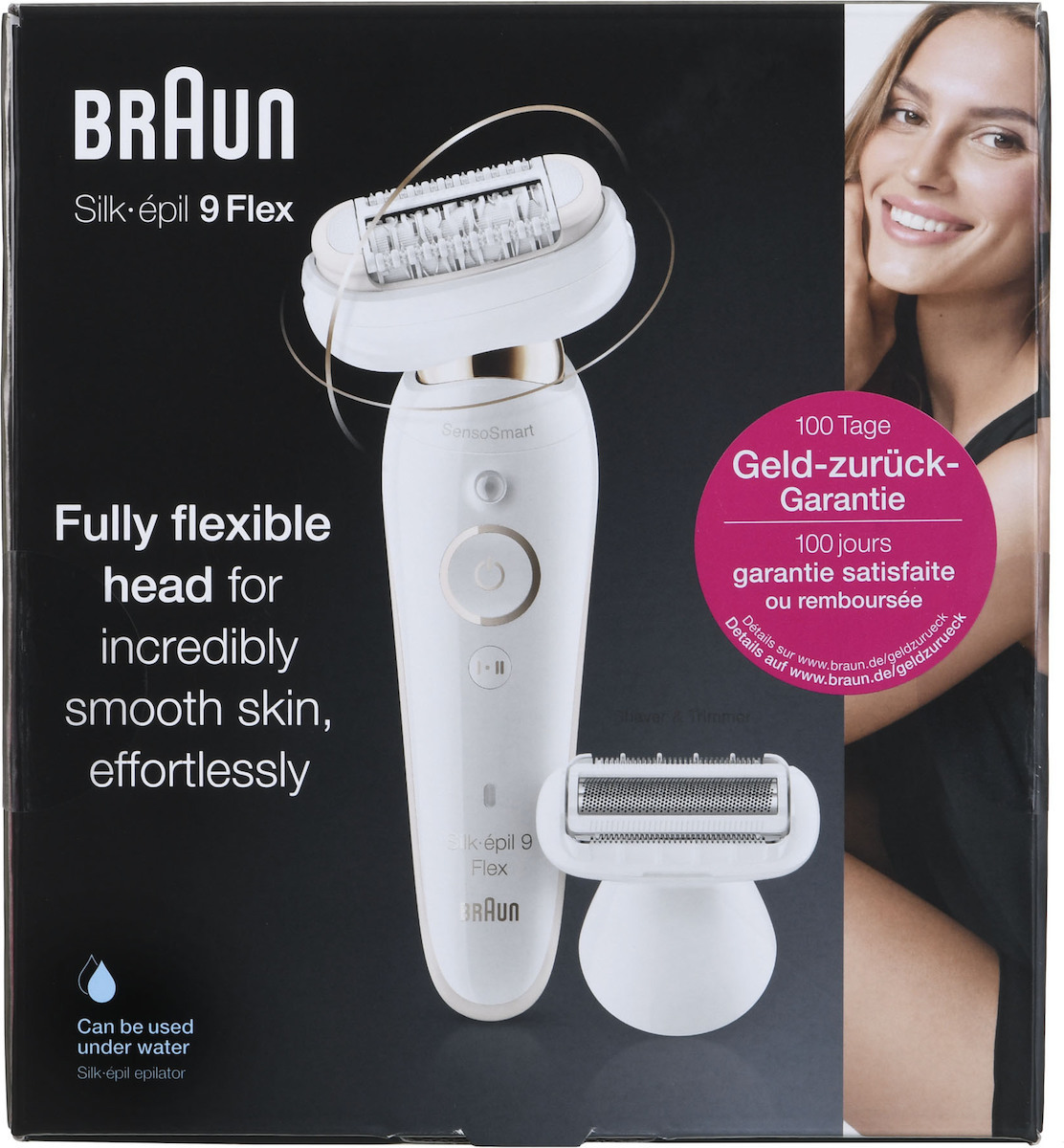 Αποτριχωτική μηχανή Braun Silk Epil 9 Flex 9002 με πλήρως εύκαμπτη κεφαλή, για ευκολότερη αποτρίχωση.