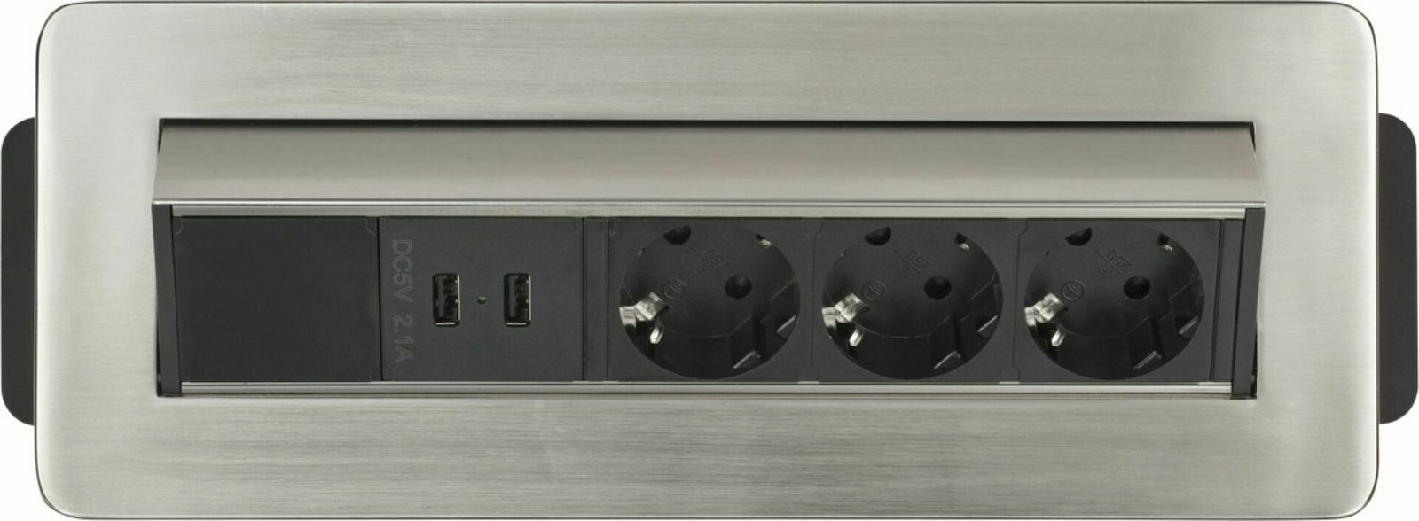 Brennenstuhl Πολύπριζο 3 Θέσεων με 2 USB-A και Καλώδιο 2m Ασημί