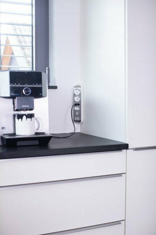 Μια συμπαγής προέκταση κουζίνας από πλαστικό πολύ ανθεκτικό στις ρωγμές και επιφάνεια από ανοξείδωτο χάλυβα υψηλής ποιότητας αποκαθιστά την τάξη στην κουζίνα ή το γραφείο σας. Το καλώδιο προέκτασης κουζίνας έχει έναν υπέροχο και πρωτοποριακό σχεδιασμό και ταιριάζει τέλεια στο περιβάλλον σας – μπορεί να τοποθετηθεί τόσο οριζόντια όσο και κάθετα.